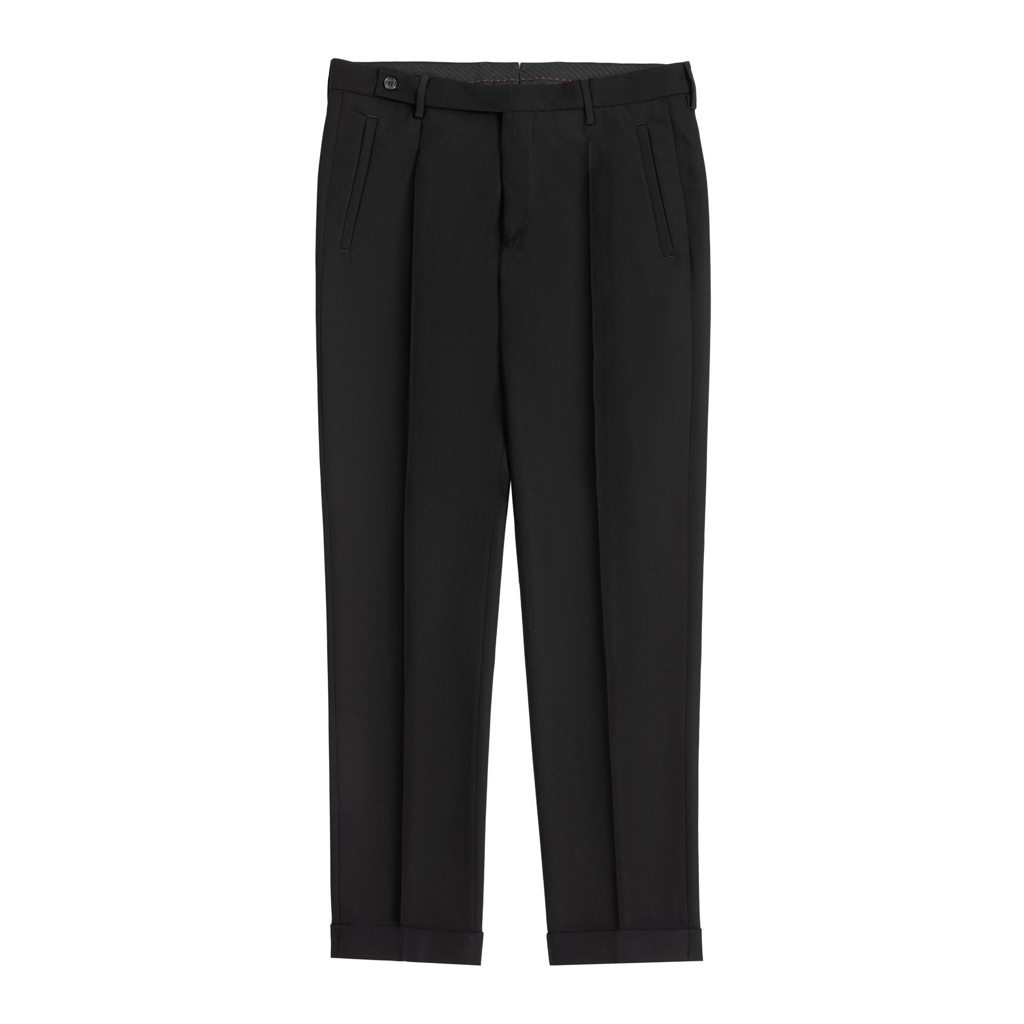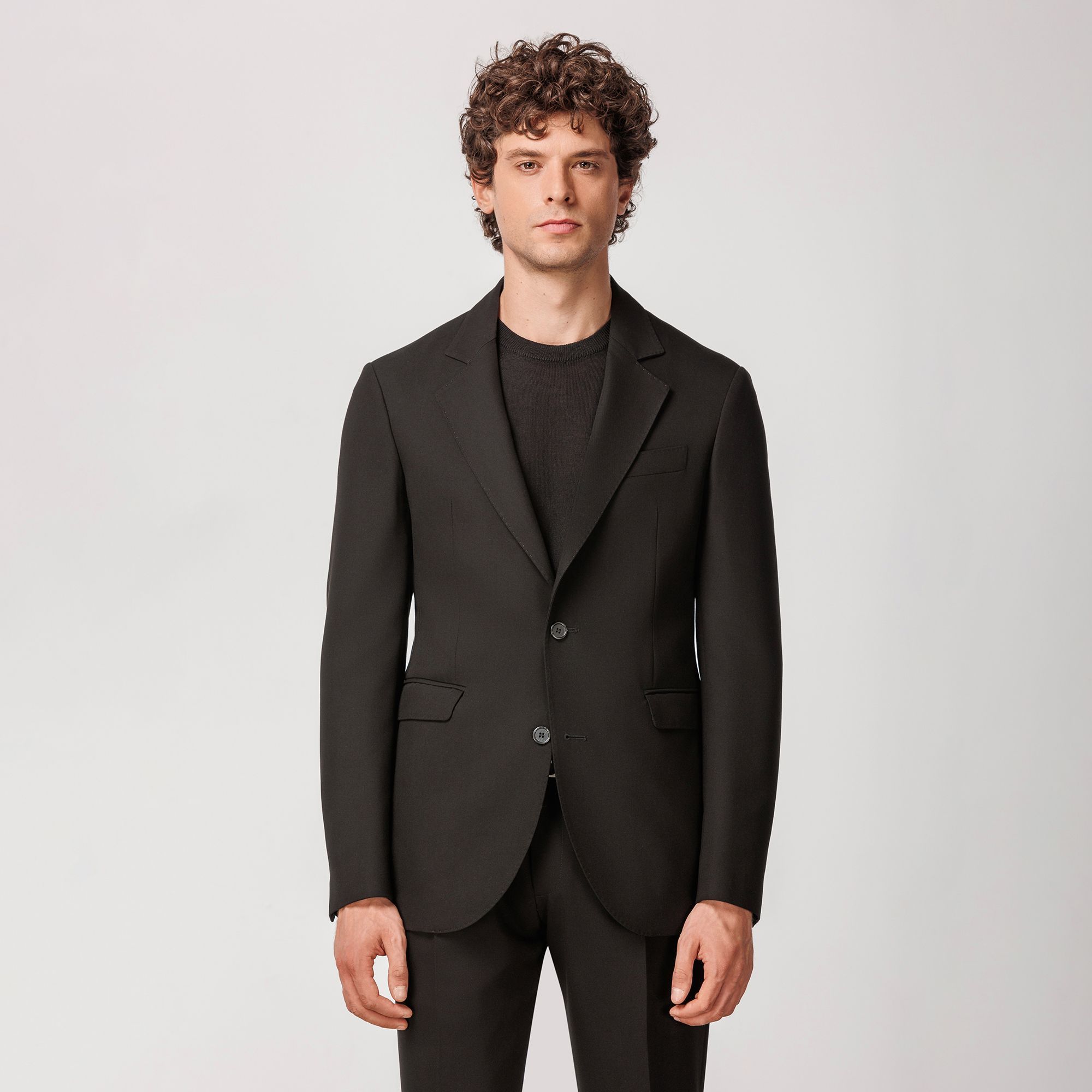 Elio Evan introduces the black single-breasted suit, crafted for those who appreciate a modern yet timeless aesthetic. Made from a luxurious blend of lyocell and virgin wool gabardine, this suit is designed for superior comfort and style. The jacket features half-lined construction and natural soft shoulders, while the pants are single-pleated with turn ups. A piece that merges sustainable materials with Italian craftsmanship.