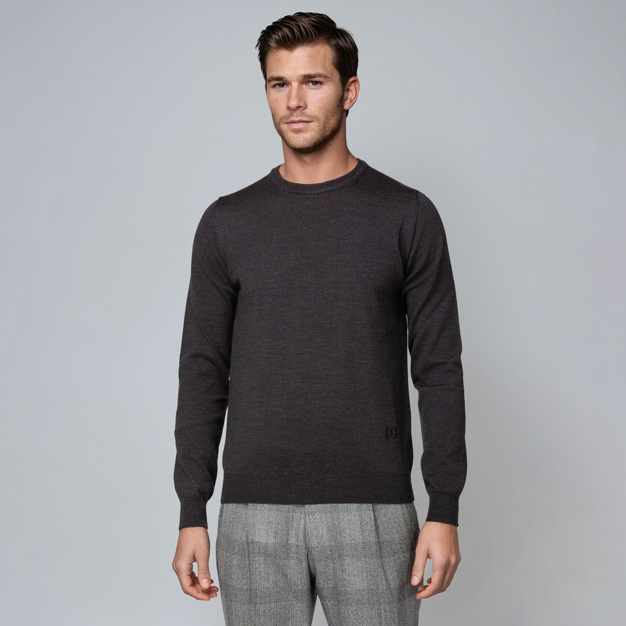 A refined interpretation of modern neutrality. This crewneck sweater from Elio Evan is knitted in Italy from fine 14-gauge extrafine merino wool, offering a perfect equilibrium of softness, lightness, and resilience. The charcoal grey tone conveys discreet sophistication, making it an impeccable choice for both professional and off-duty settings.