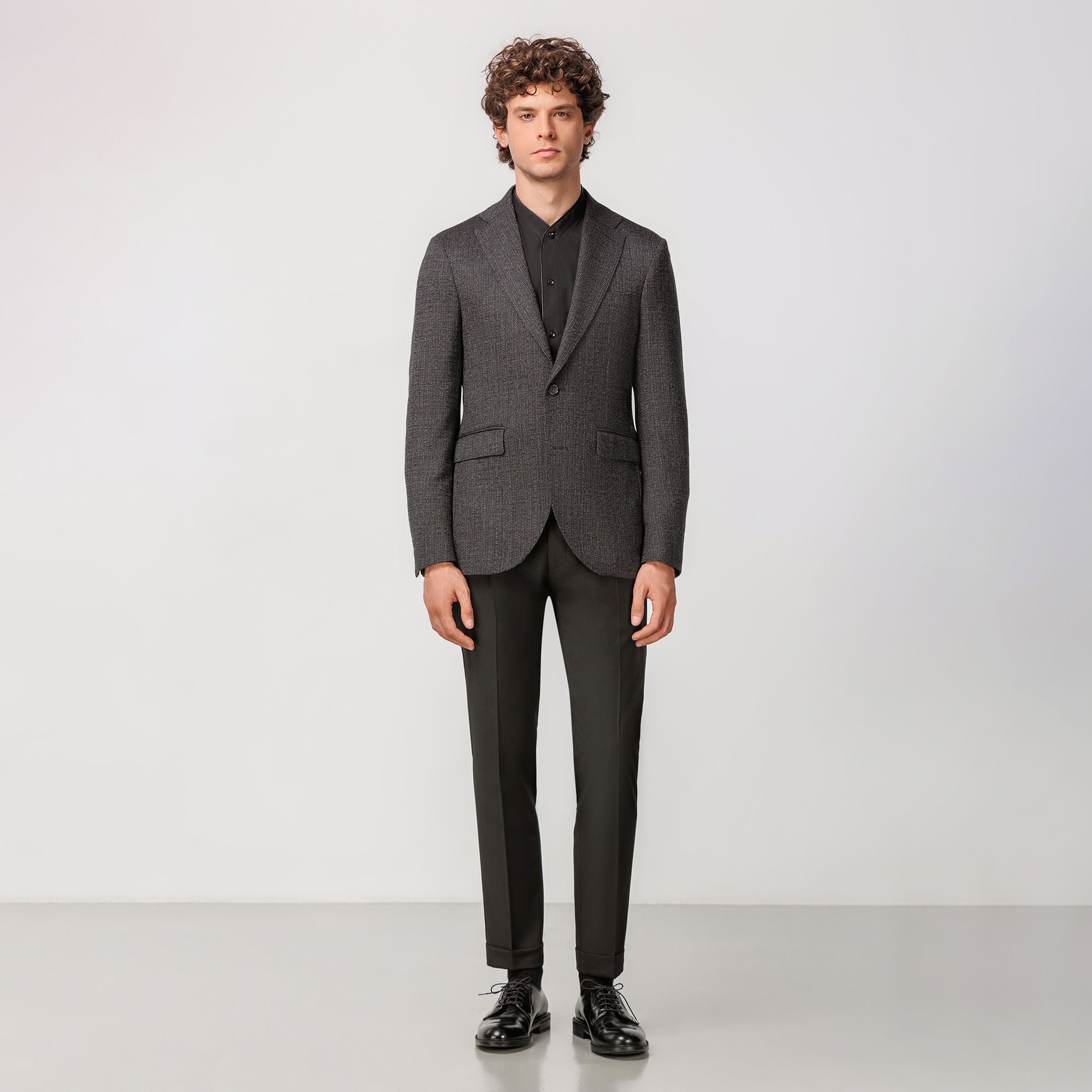 Suit jackets and blazers are the brand's iconic garments featuring unique tailoring methods and quality that promote comfort and innate elegance. A balance between timeless beauty and contemporary trends. In detail, the charcoal grey blazer in mid weight virgin wool and cotton elasticized blend with a three dimensional weaving. The jacket is crafted with an all sizes flawless fit in Vomero half lined construction with bordered seams and natural soft shoulders. Made in Italy.
