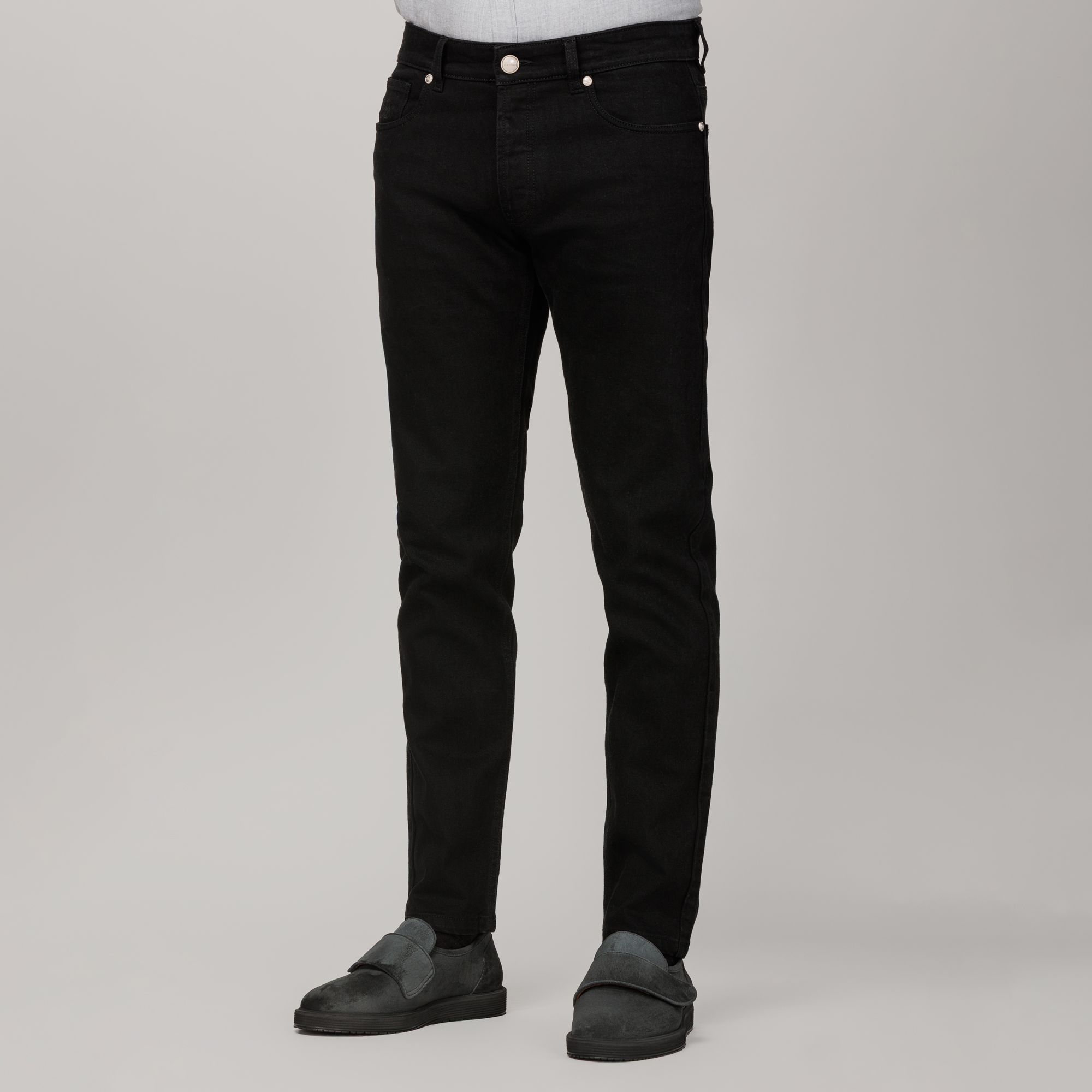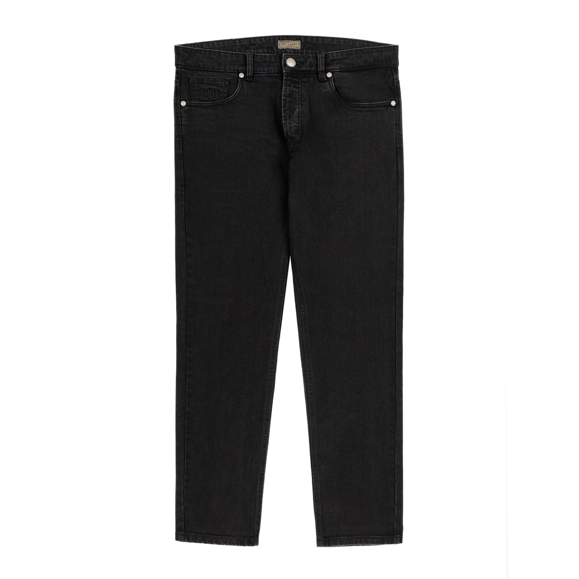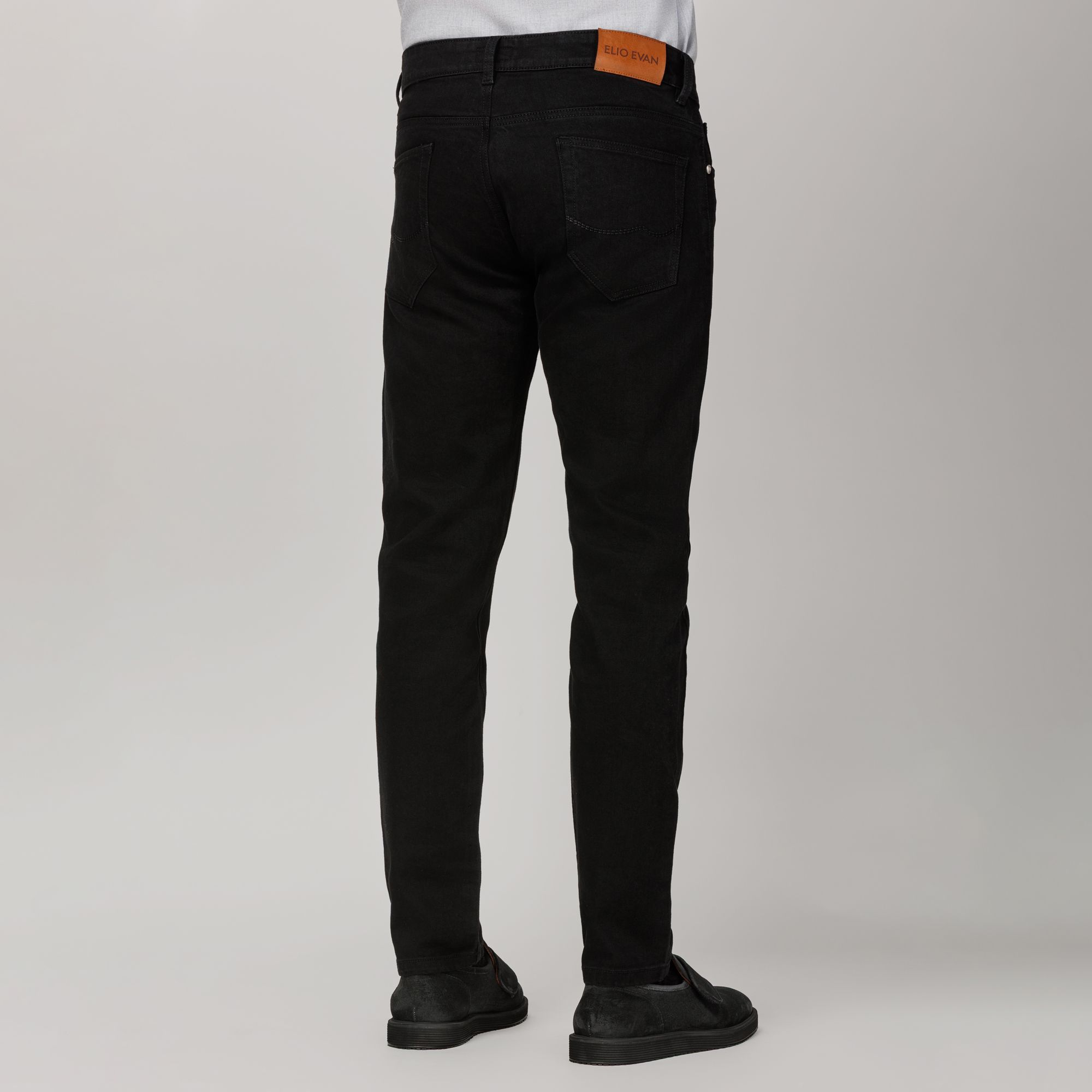 Defined by minimalist lines and tonal depth, the Elio Evan Soho jeans reinterpret a classic denim icon through Italian craftsmanship. Crafted in Italy from full-colour black denim, they reveal a soft hand and balanced structure. Tailored in a slim fit with regular waist, they feature tonal embroidery, matte-nickel hardware, and the signature leather patch, evoking effortless sophistication from casual to dress contexts.