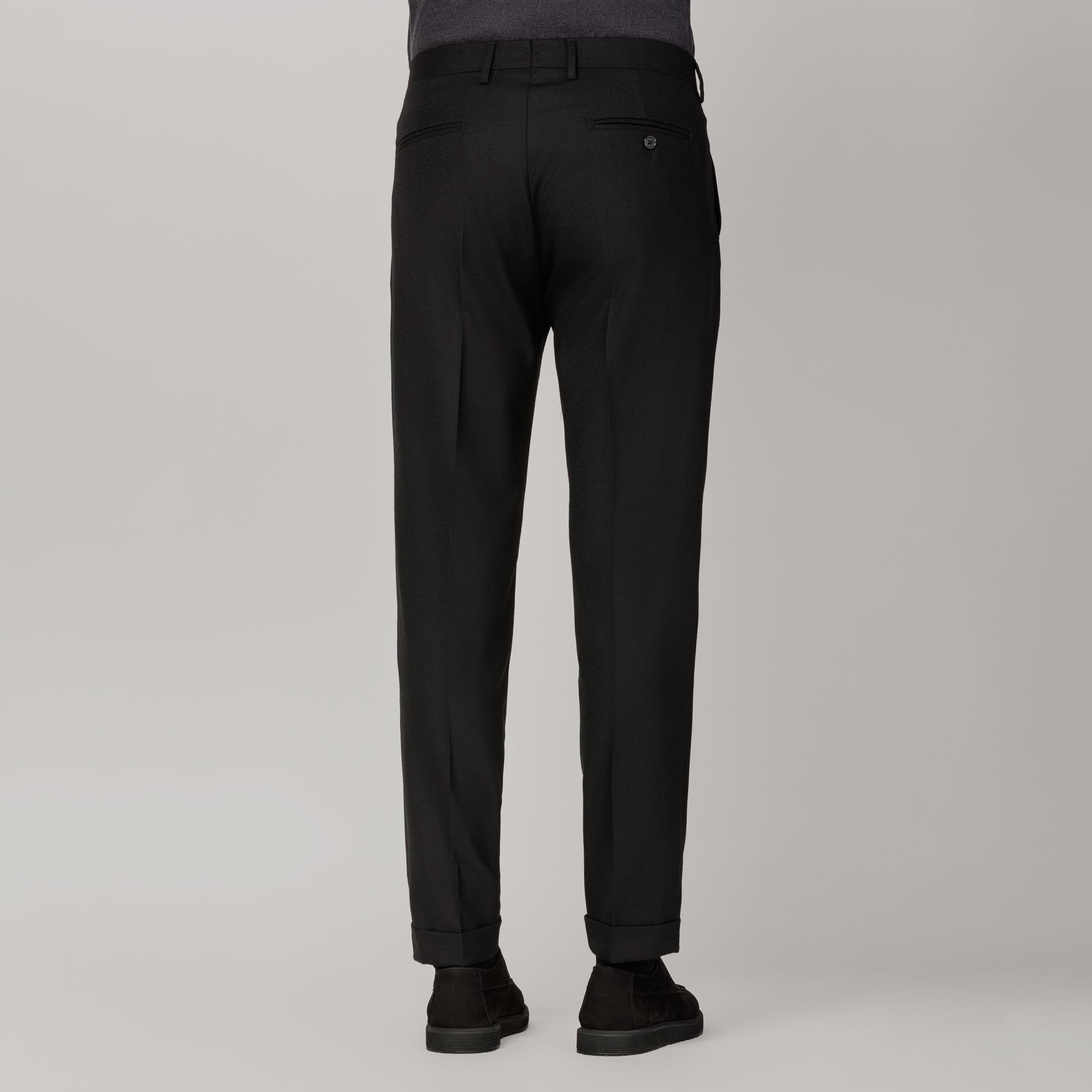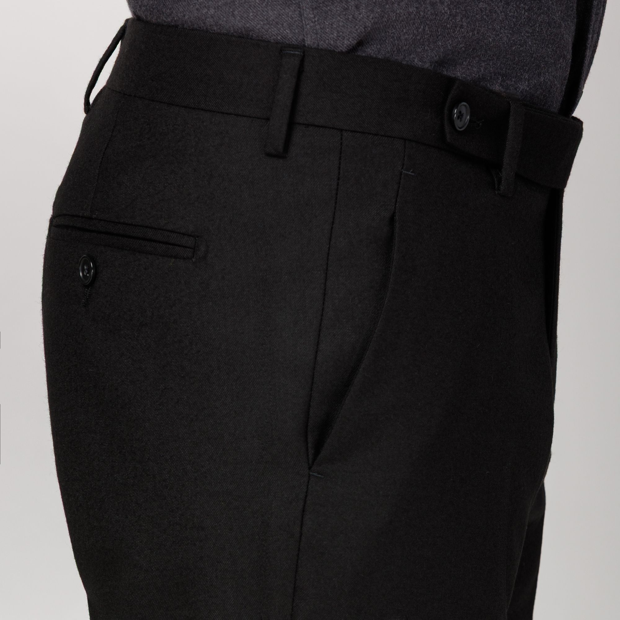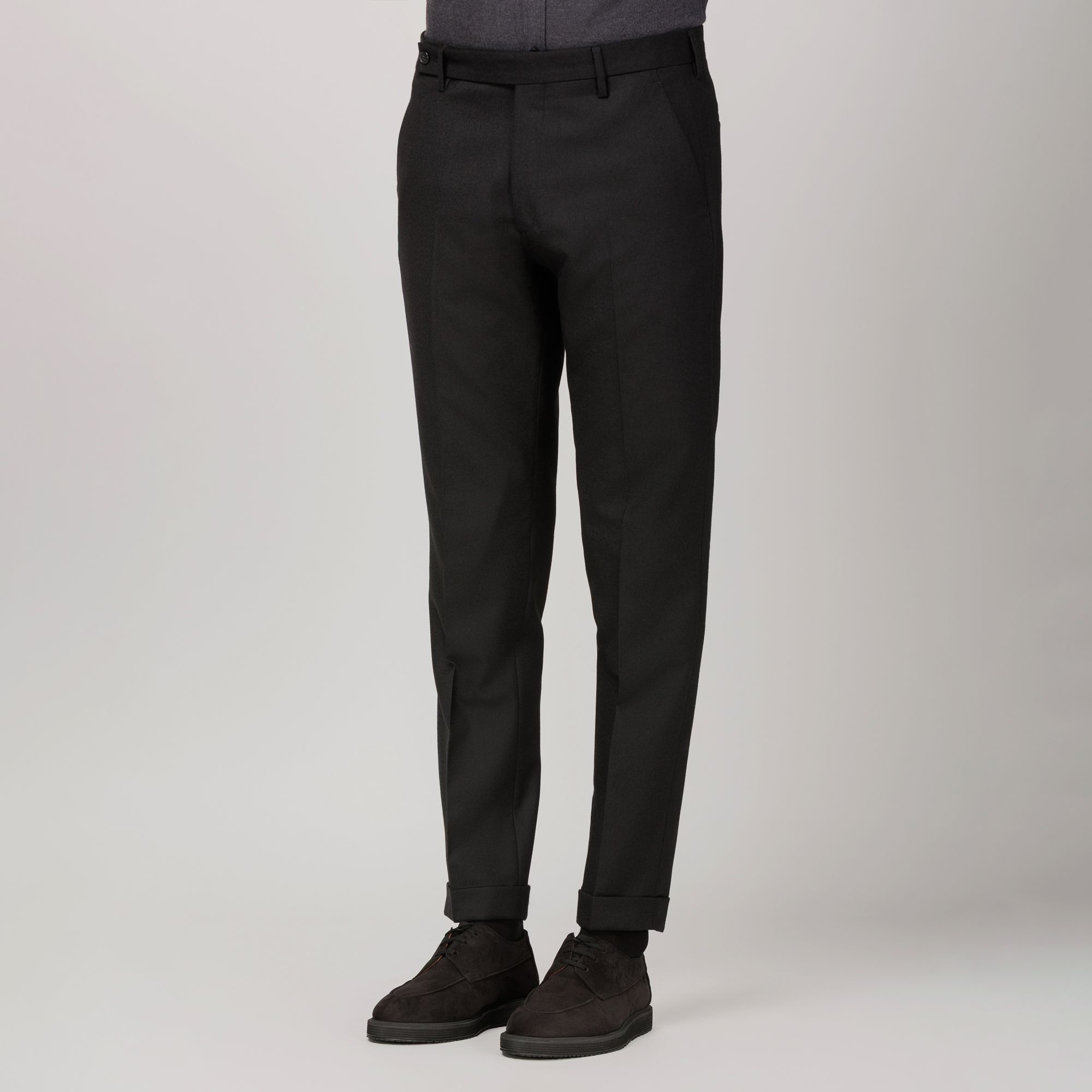 Men’s flat-front flannel trousers tailored in the Marnes model, designed for a flawless regular fit that blends structure with ease. Crafted from a fine wool-blend flannel with performance qualities — natural stretch, no-iron comfort, and easy-care hand-wash practicality — they offer timeless versatility across seasons. Featuring an extended belt-type closure, sartorial waistband, and turn-ups at the hem, these trousers transition effortlessly between semi-formal and casual contexts.
