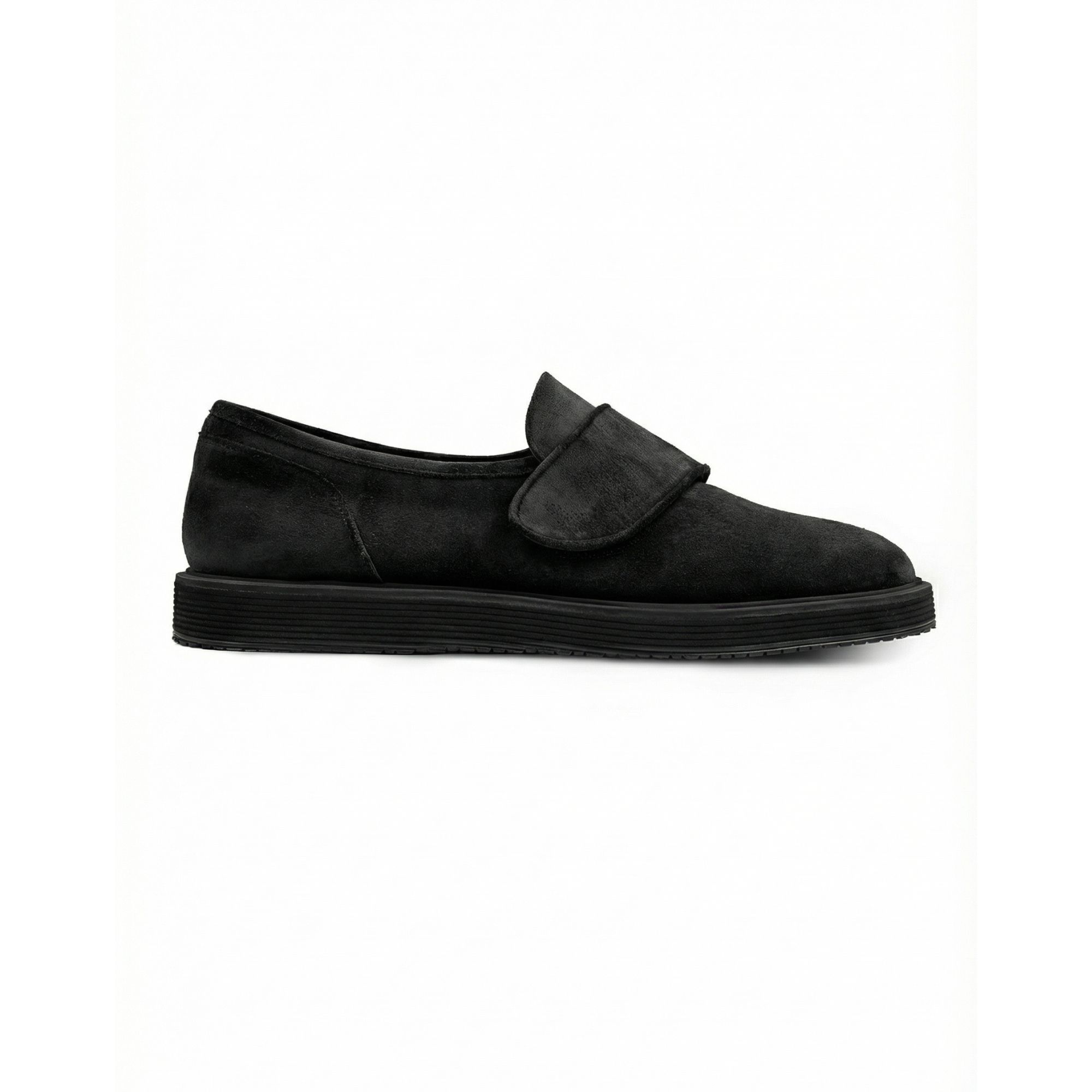 Sleek and minimal, the black Monza single monk captures the maison’s tailored clarity. The strap-and-buckle closure clears the vamp for an uninterrupted line, emphasising the graceful curve of the last. A micro midsole cushions impact, while the Vibram® outsole supplies reliable grip and a fluid transition through the stride. Inside, full-grain leather lining manages moisture and moulds gently to the foot for day-long comfort. From soft-shouldered suits to refined casual looks, this is a versatile choice for men who value discretion over display. Designed by Elio Evan Studio; crafted in Italy.