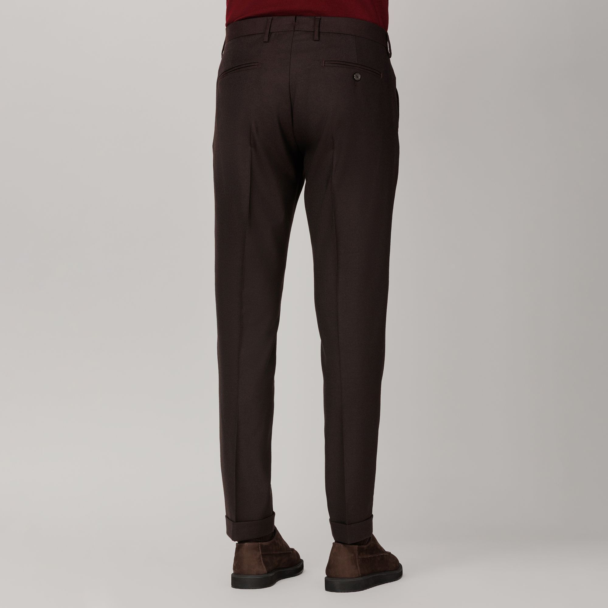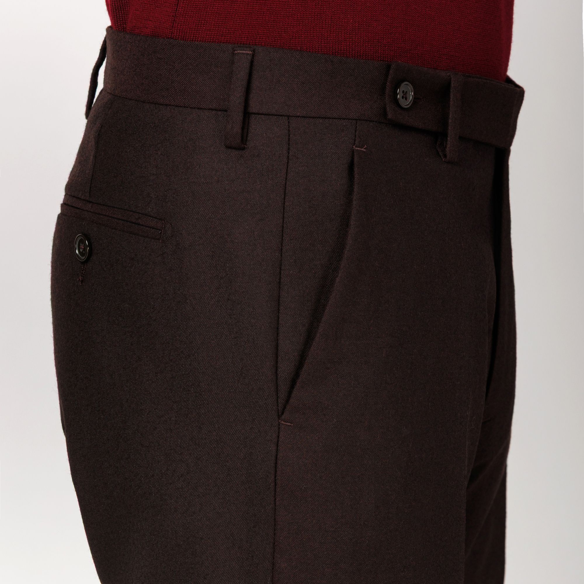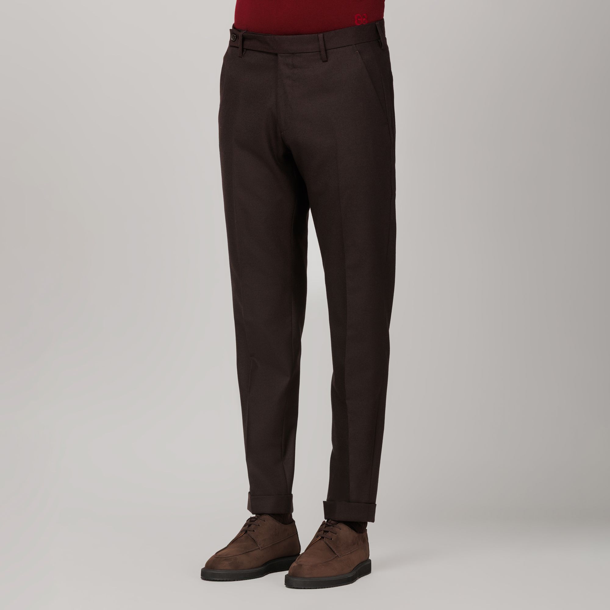 A winter essential shaped with sartorial clarity. The Marnes 1P flat-front trousers are cut from a stretch wool-blend flannel offering no-iron comfort and easy hand-wash care. A tailored waistband with extended closure frames the waist; the turn-ups and pressed crease deliver a composed line that adapts seamlessly from semi-formal dressing to refined casual looks. Key characteristics