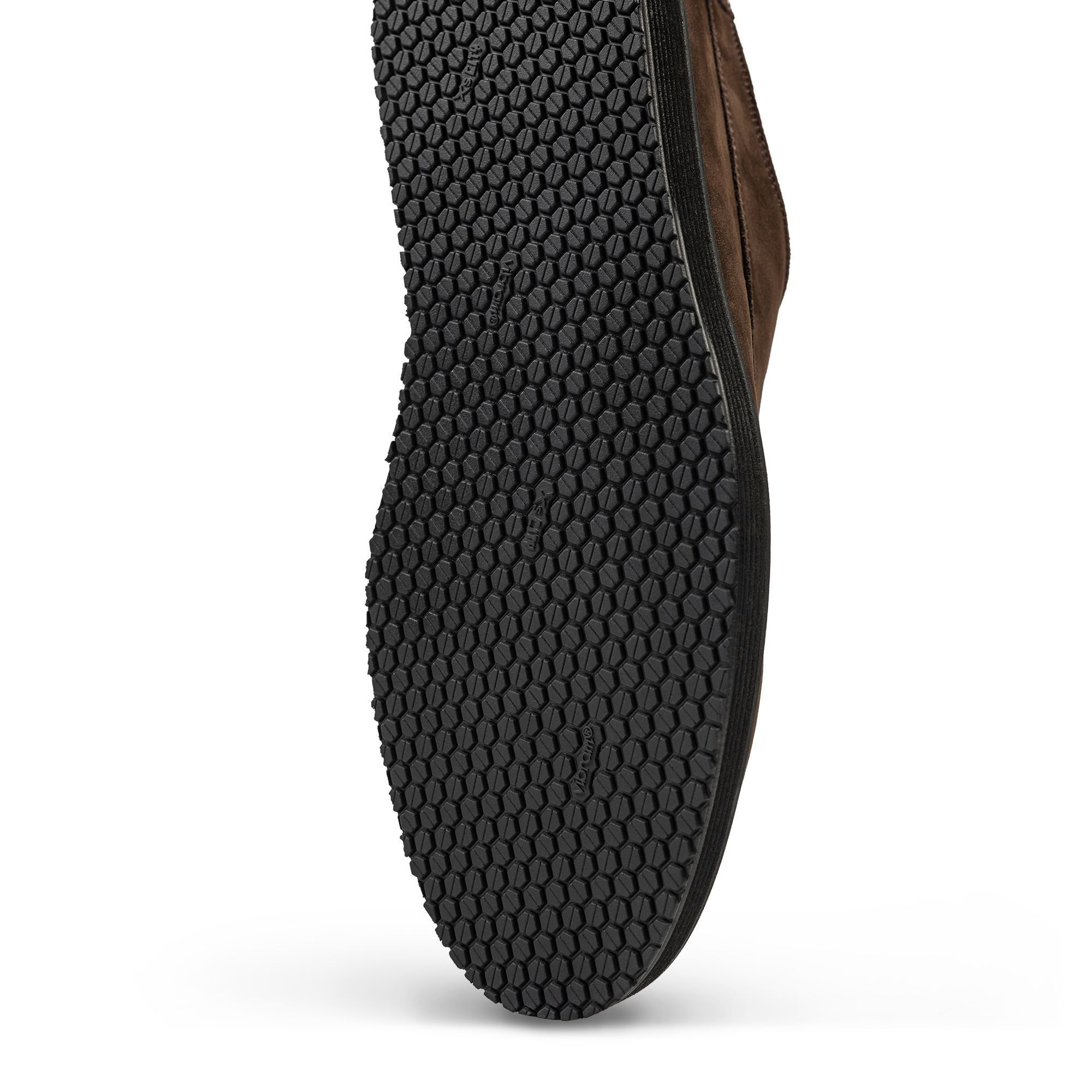 Cut from supple brown nubuck, the Terragio last delivers a contemporary, slightly elongated profile that stays easy on the foot during long days. The hallmark open-lacing construction offers effortless entry and a naturally adjustable fit, while the discreet piping at the toe frames the silhouette with sartorial precision. Underfoot, a micro midsole teams with a lightweight Vibram® rubber outsole to provide flexible cushioning, dependable grip, and a quieter step on city pavements. Fully lined in full-grain leather, the shoe promotes breathability and retains its shape over time. Versatile by design, it anchors smart-casual tailoring—think flannel trousers and unstructured blazers—as confidently as it elevates premium denim and knitwear. Crafted in Italy, where modern design meets artisanal discipline.