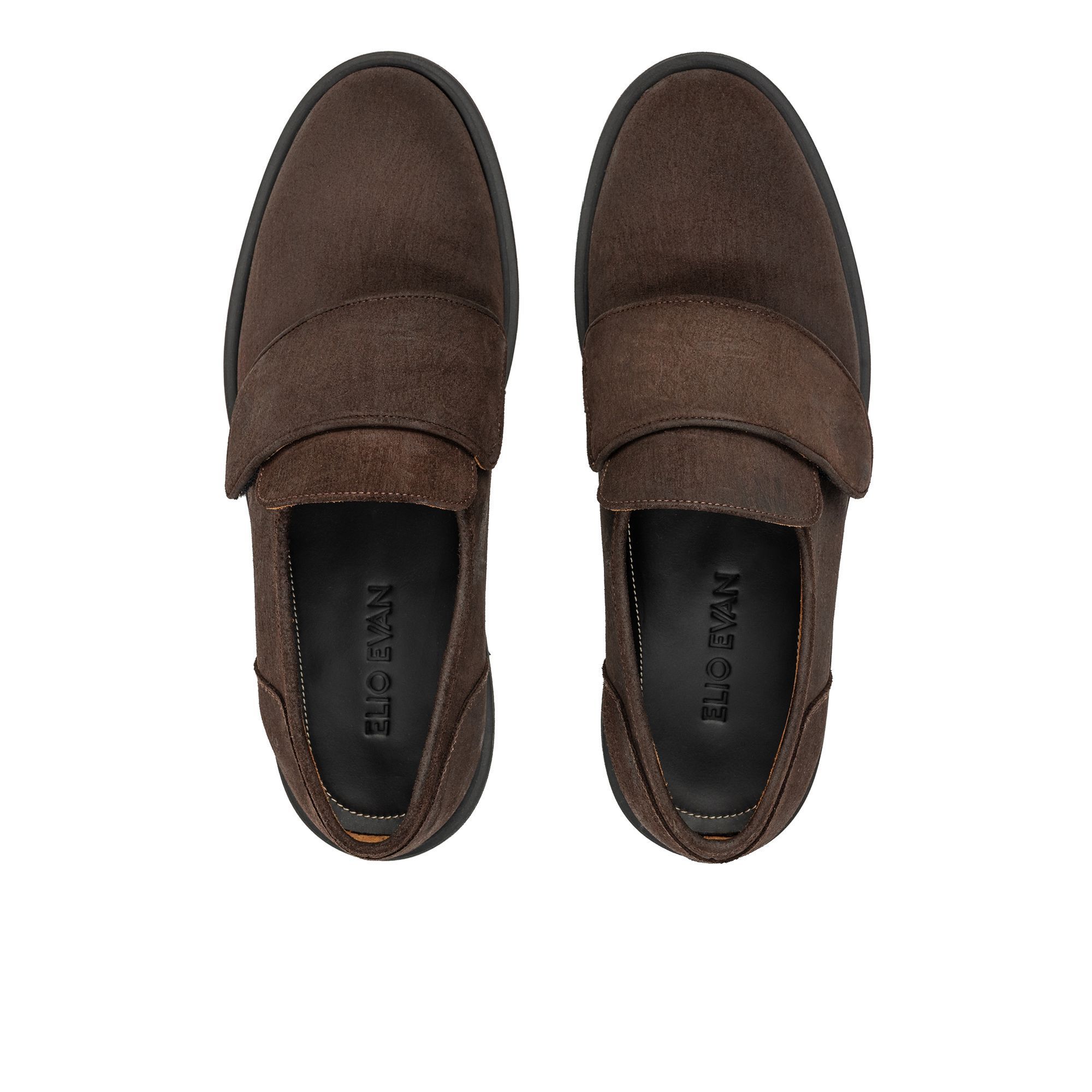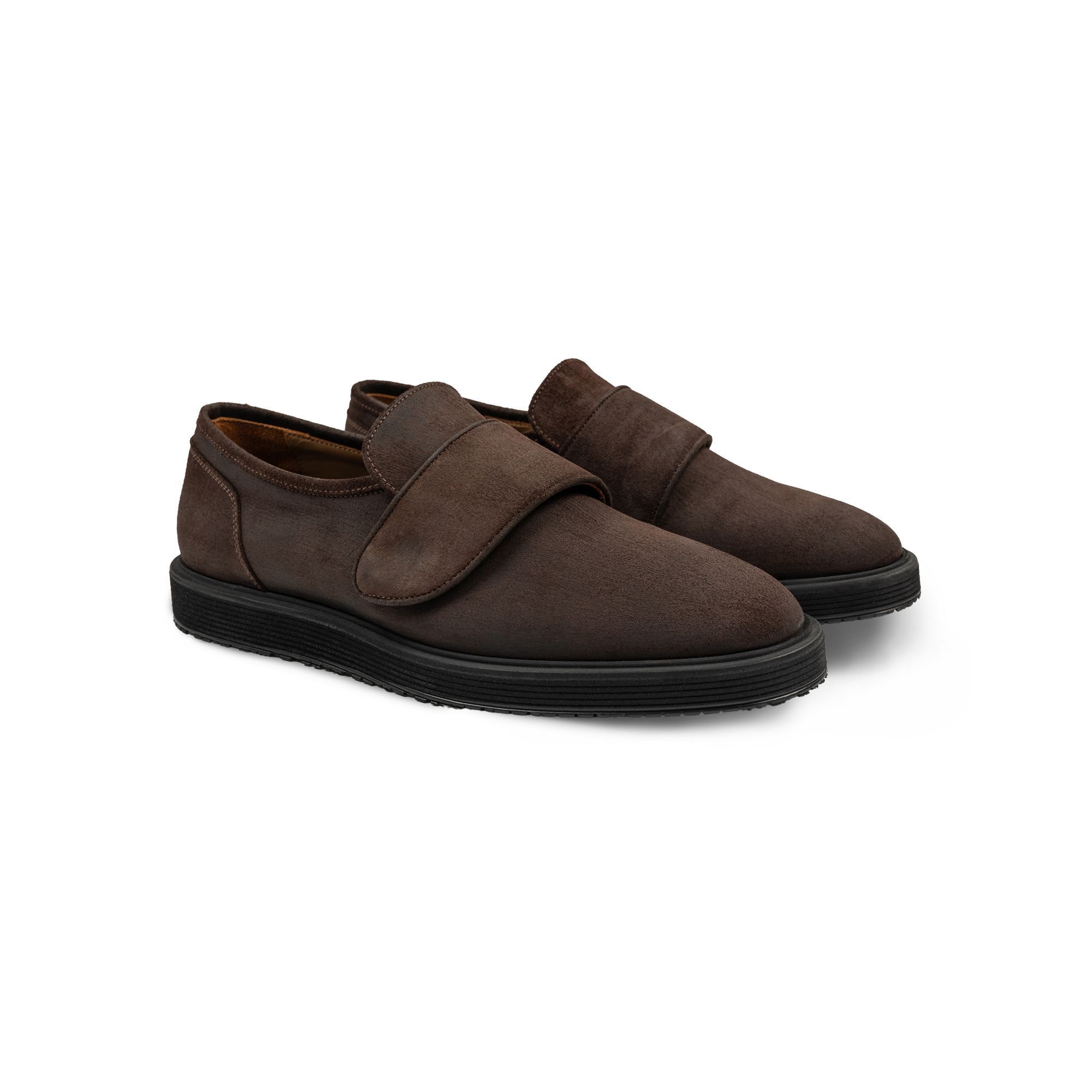 Crafted in brushed brown nubuck, it presents a sculpted upper closed by a neat strap and buckle—clean, functional, subtly architectural. Beneath, a micro midsole and Vibram® rubber outsole balance cushioning with agility, lending quiet confidence to each step. Inside, full-grain leather lining enhances breathability and shapes to the foot for a personalised feel. The result is a shoe that transitions with ease: pair it with pleated trousers and a soft-shouldered blazer or with pressed chinos and elevated knitwear. Designed by the Elio Evan Studio and made in Italy to exacting standards.