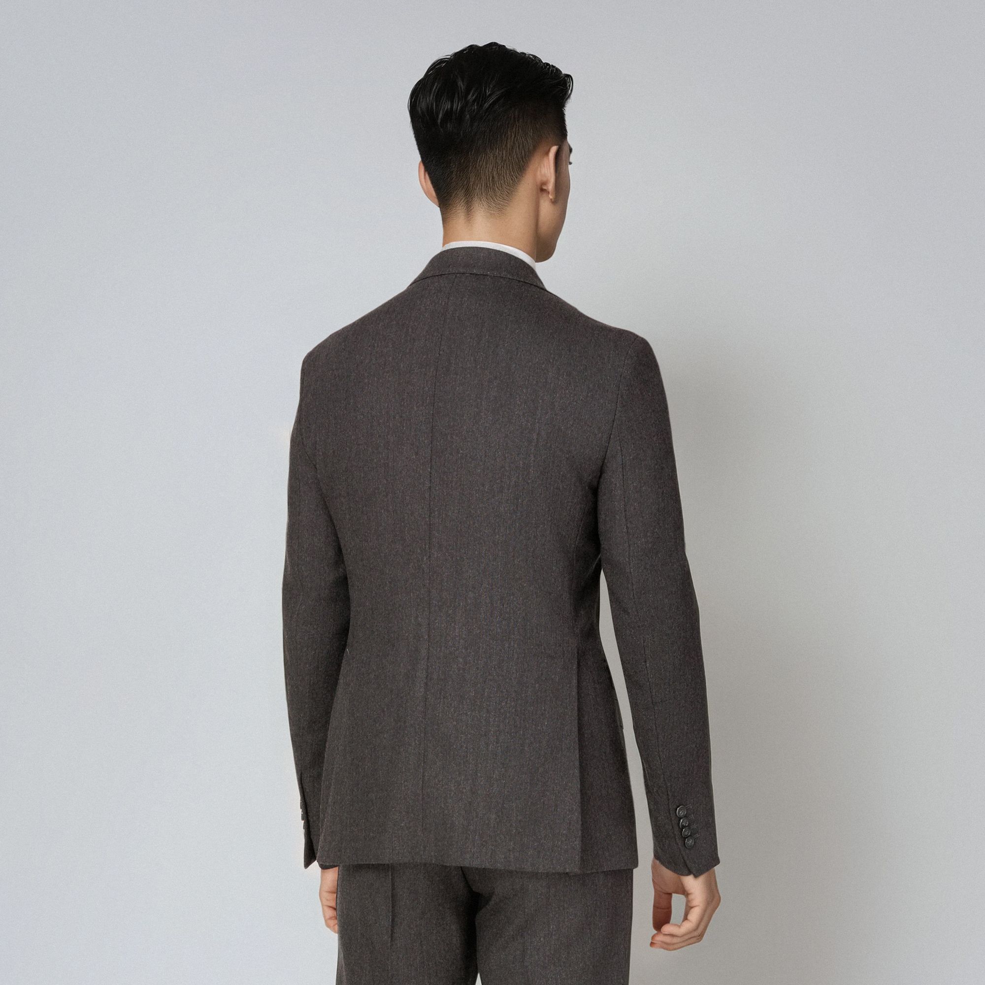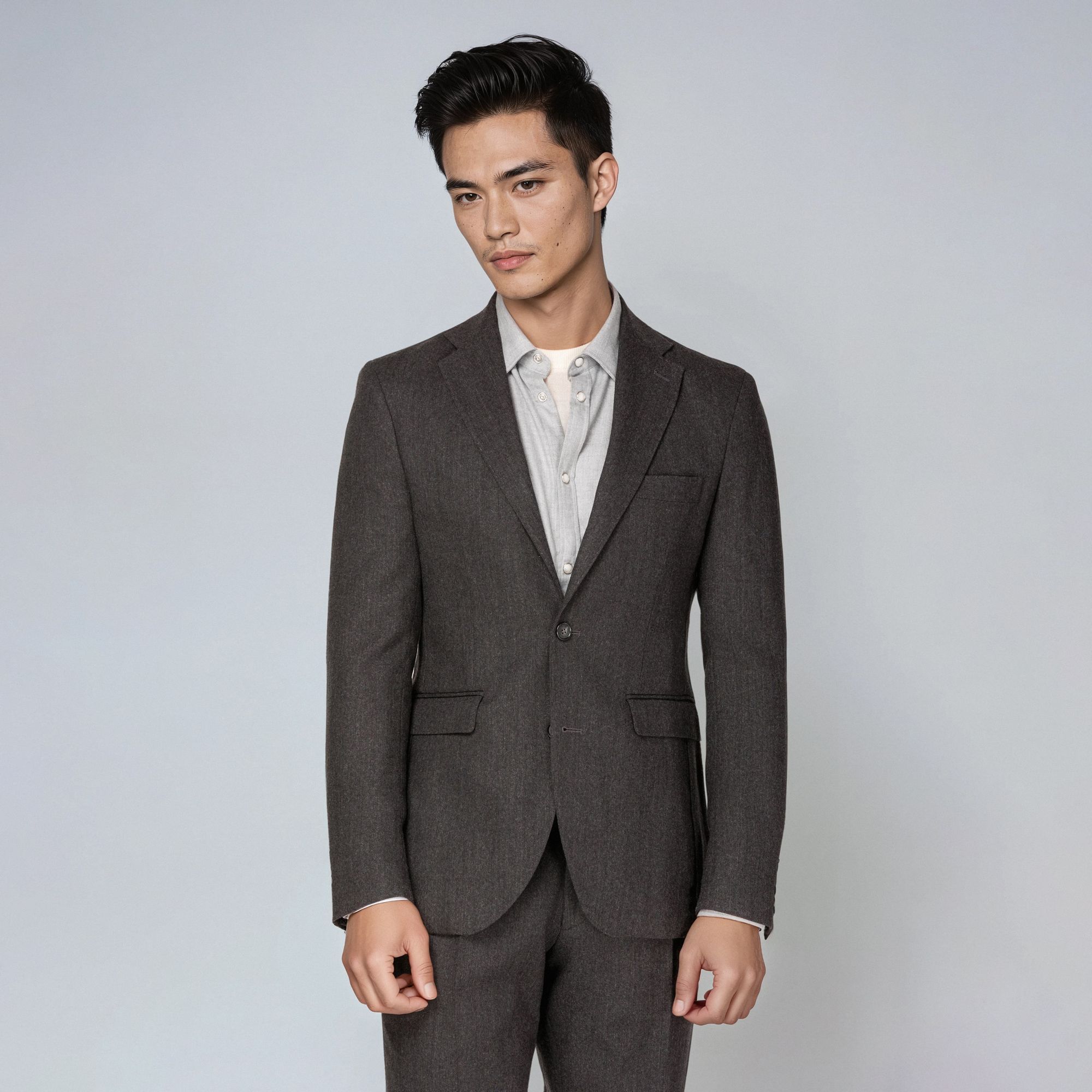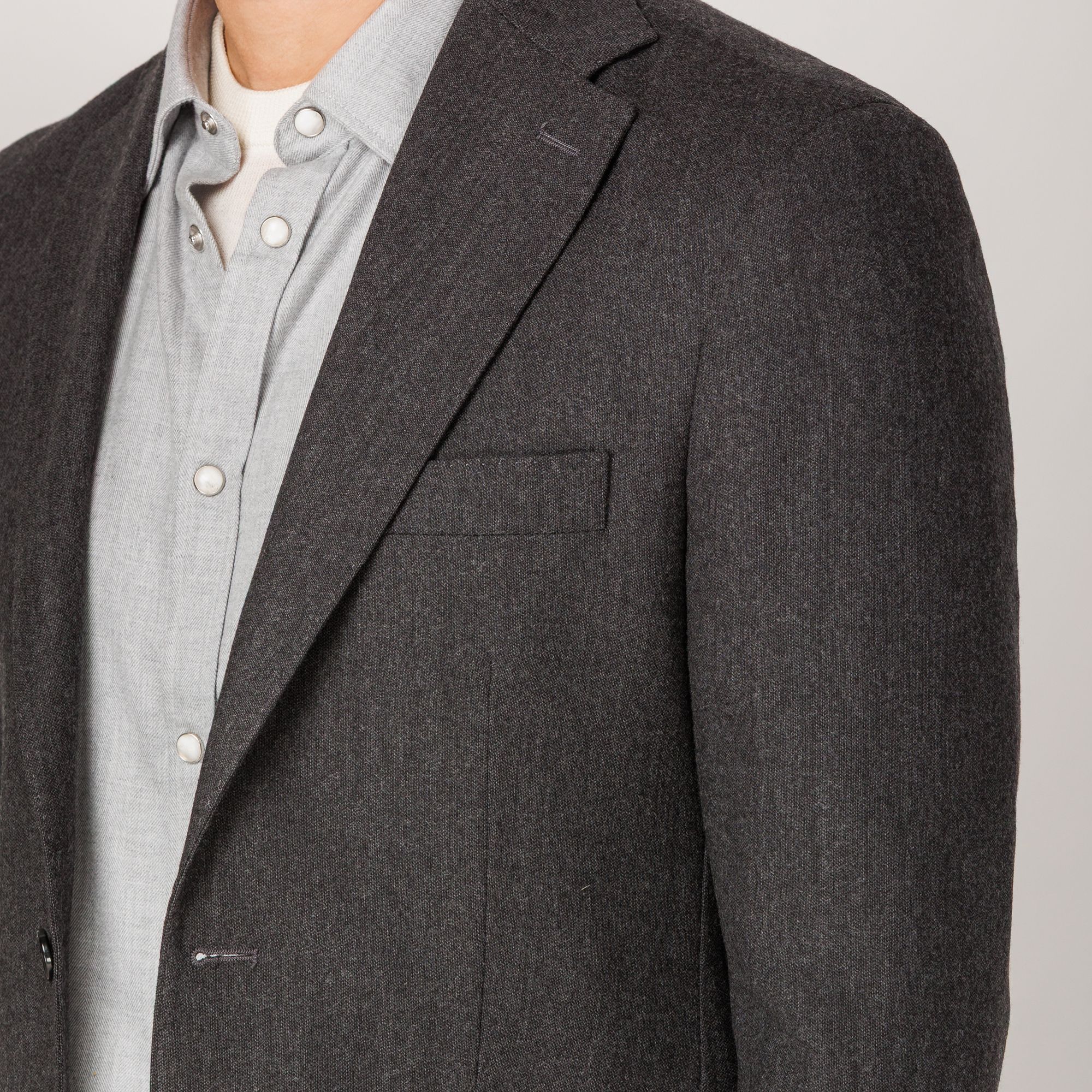 A men’s charcoal-grey blazer in 100% virgin wool crepe with a softly brushed finish that enhances texture and depth. The Vomero G model by Elio Evan showcases Italian unconstructed tailoring, featuring natural shoulders, AMF-stitched notch lapels, and a half-lined interior for refined comfort. A timeless men’s blazer that bridges classic and contemporary style, also available in navy blue and black.