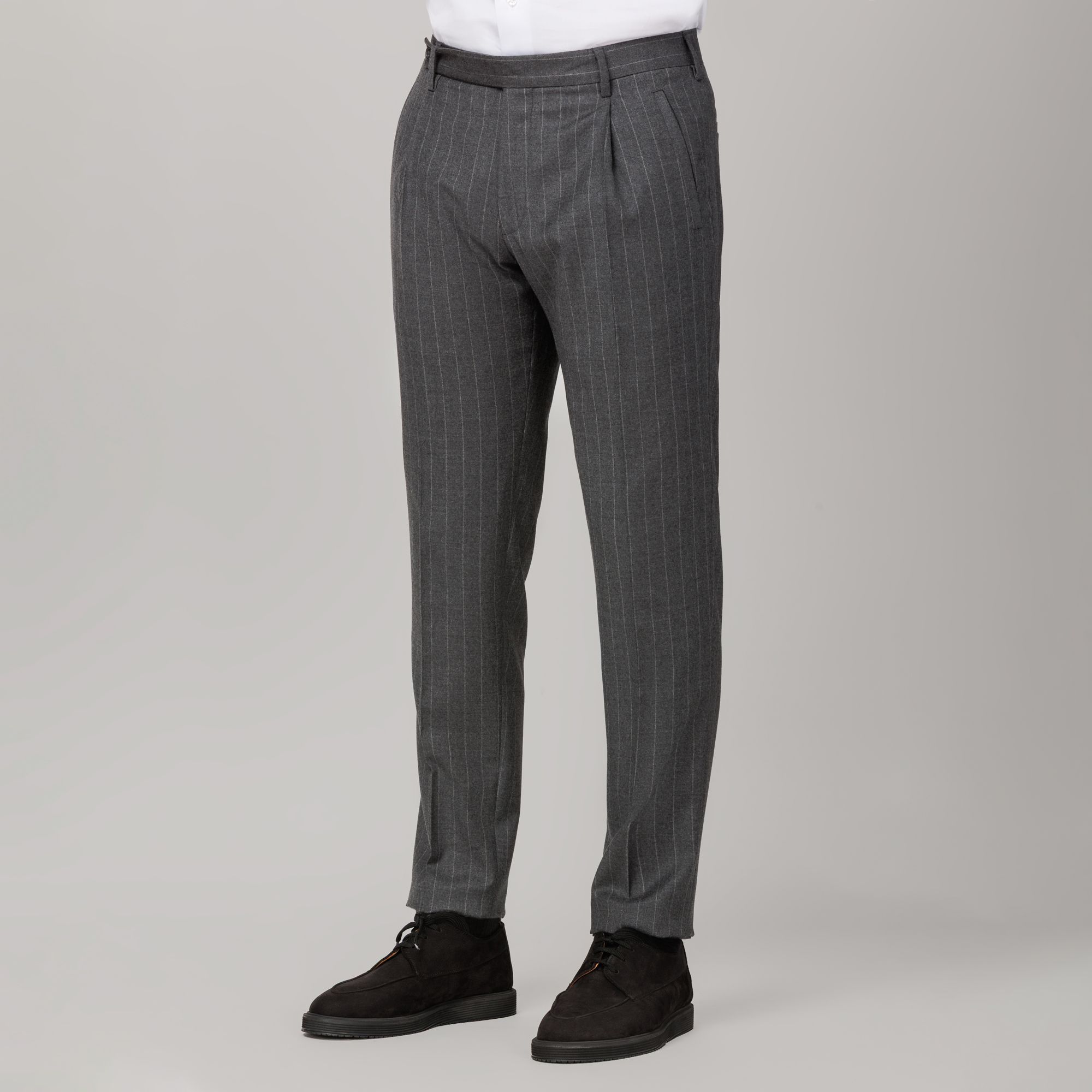 Pair with the Vomero DP striped grey double-breasted blazer for a coordinated mix & match suit, or wear separately for elegant business or smart-casual looks. A timeless piece among men’s tailored trousers, blending balance, movement, and Italian ease.