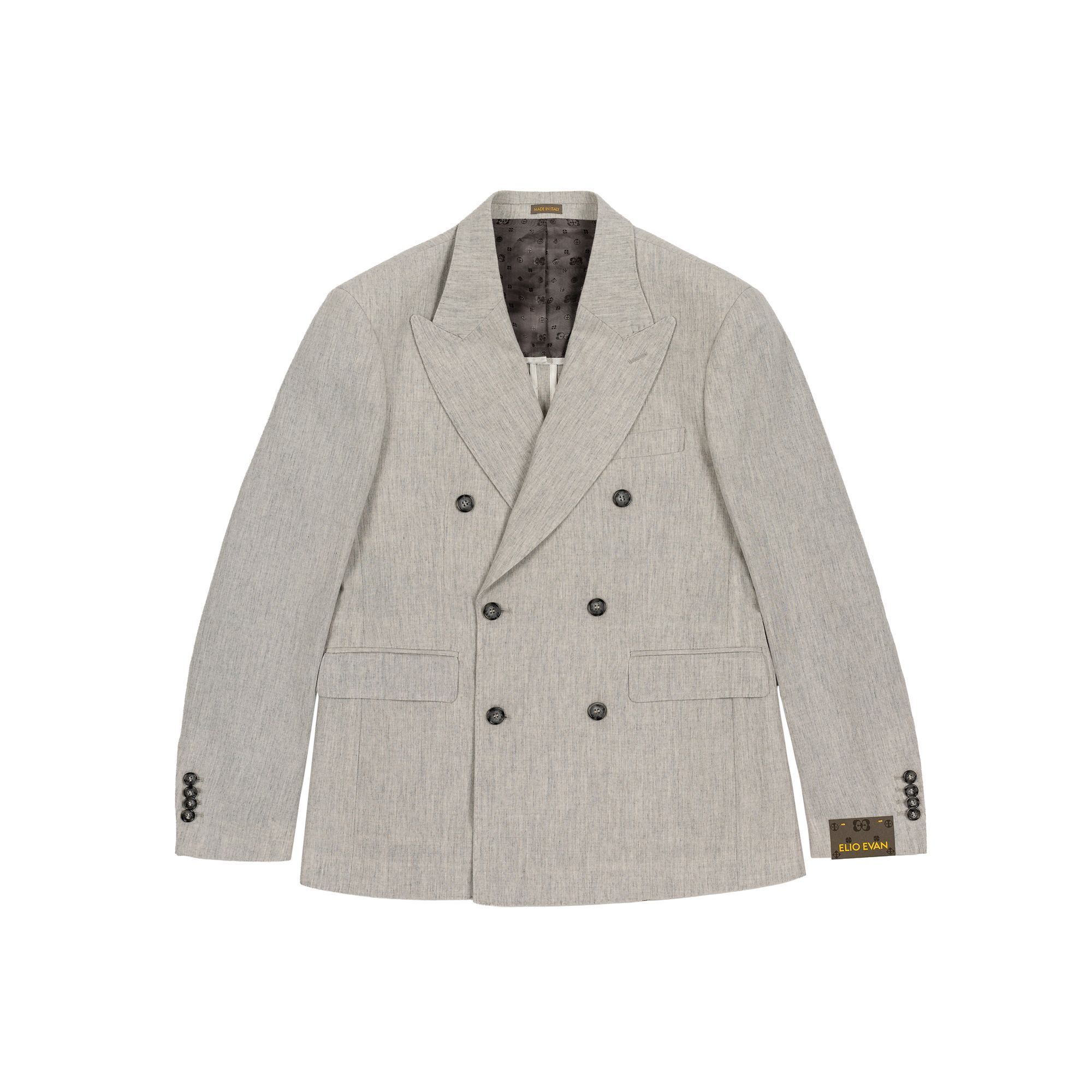 The Elio Evan Vomero DP double-breasted suit in light grey mélange embodies timeless Italian craftsmanship and modern sophistication.