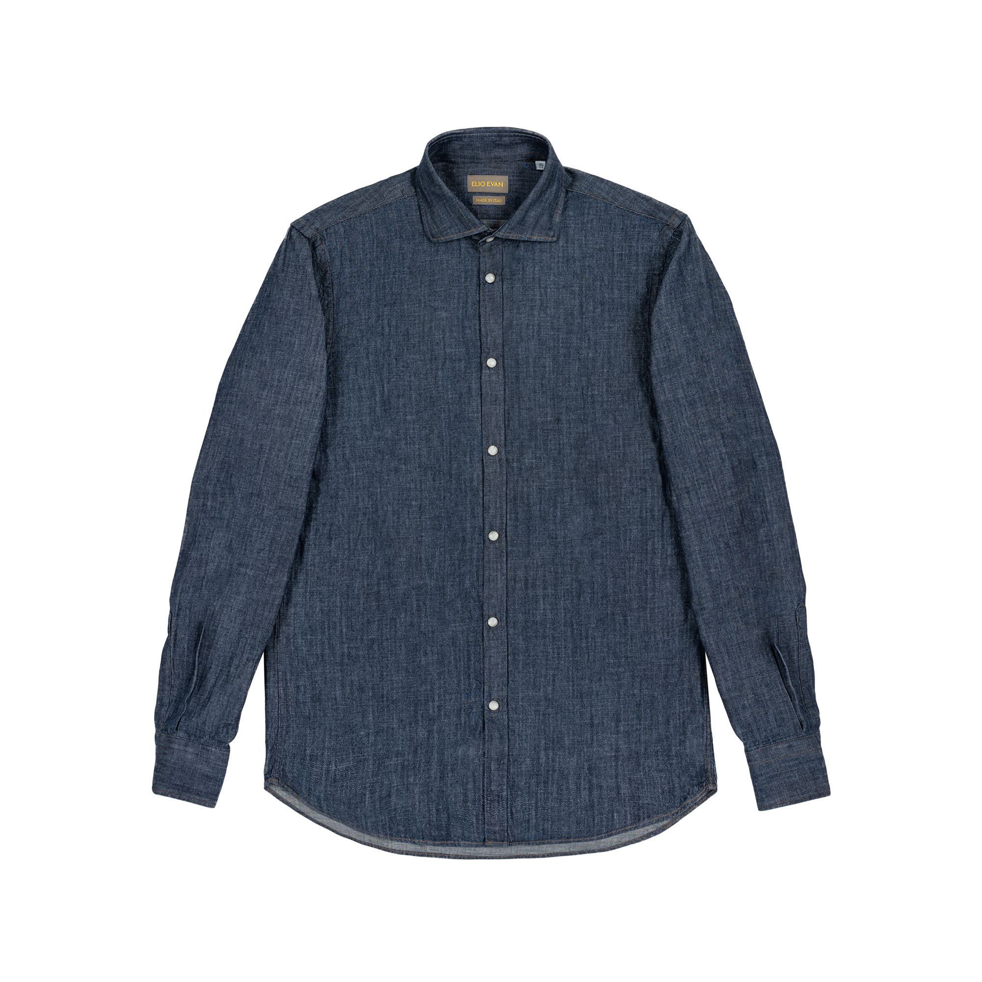 A contemporary reinterpretation of the denim shirt — precise, tactile, and unmistakably Italian. This Elio Evan men’s organic denim shirt is crafted from certified organic cotton with a soft stone-washed texture that evolves beautifully over time. Refined press-stud buttons and contrast stitching enhance its character, while the tailored cut ensures a clean silhouette and effortless drape. A versatile essential that transitions seamlessly from casual days to elevated evenings, reflecting the brand’s pursuit of modern refinement. Fabric and manufacture Made in Italy.
